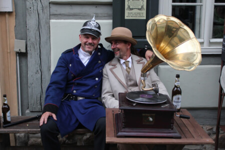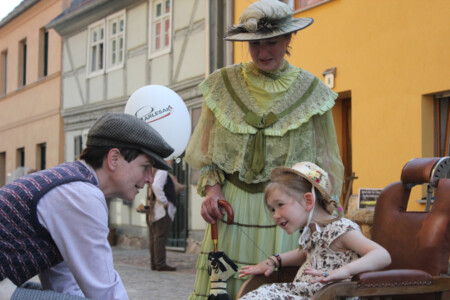 Am sonnigen Sabinchenwochenende entführten Mitglieder des Kinofördervereins und fleißige Helfer die Besucher auf eine Zeitreise in die Gründerzeit. Mit zauberhaften Kostümen und der Zeit angepassten Requisiten wurde die Marienkirchstraße zur Filmkulisse. Es gab Einblicke in das Handwerksleben, gemütliche Ecken und schmackhaftes für den Gaumen. (Fotos: rabunzel.com)